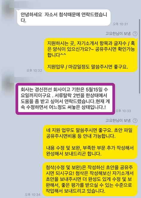 자기소개서 첨삭/대필 문의: 연락처 (24시간 상담 가능)