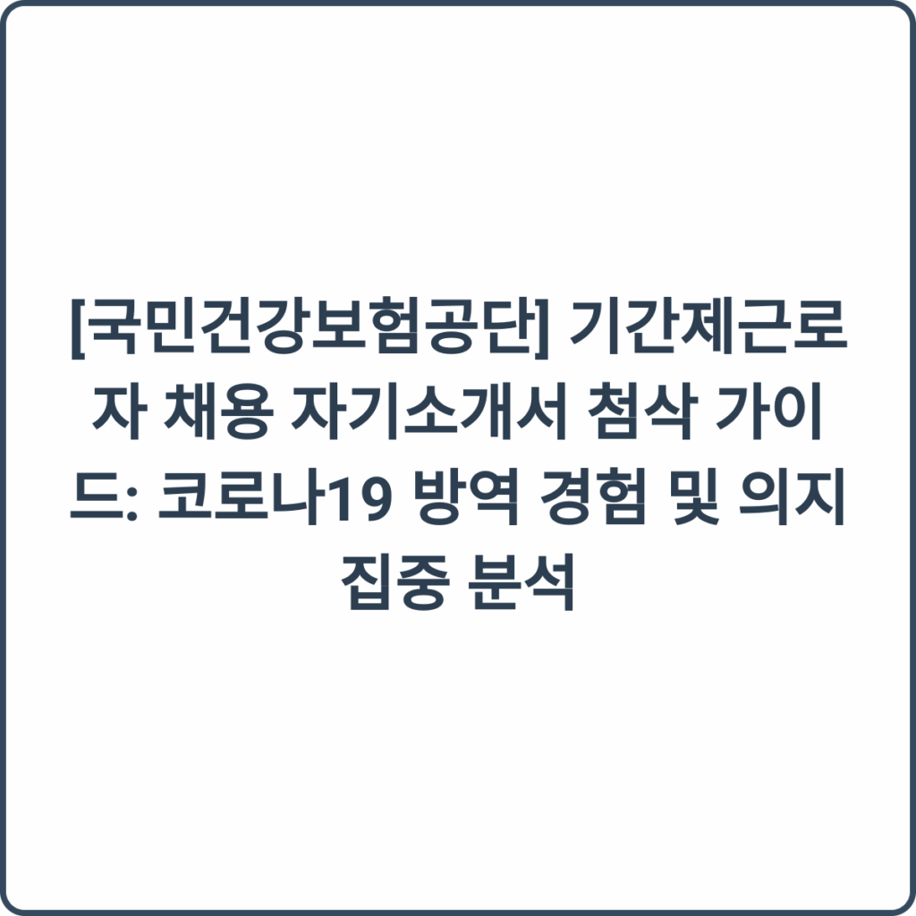 [국민건강보험공단] 기간제근로자 채용 자기소개서 첨삭 가이드: 코로나19 방역 경험 및 의지 집중 분석