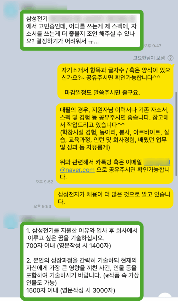 - >> 1단계: 문의 접수 및 자료 공유 (지원 직무/기업, 이력서, 기존 자기소개서(초안) 등)