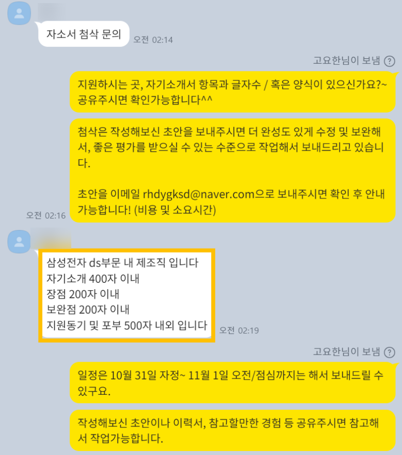 >> 4단계: 첨삭된 자기소개서 전달 및 피드백