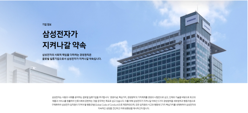 삼성전자는 대한민국을 대표하는 글로벌 IT 기업으로, 반도체, 스마트폰, TV 등 다양한 전자 제품을 생산하고 있습니다. 특히, 혁신적인 기술 개발과 품질 경영을 통해 세계 시장을 선도하고 있으며, 지속 가능한 성장을 추구하며 사회적 책임을 다하는 기업입니다.
