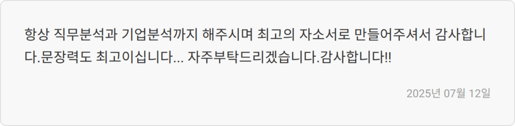 철저한 준비와 꼼꼼한 자기소개서 작성, 그리고 전문가의 첨삭을 통해 여러분의 합격을 응원합니다!💪