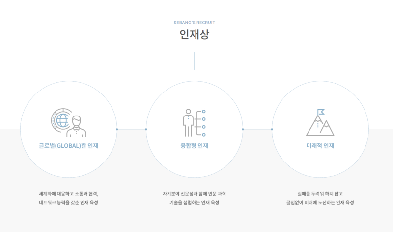 인재상: 창의적이고 도전적인 인재, 협력적인 인재, 책임감 있는 인재