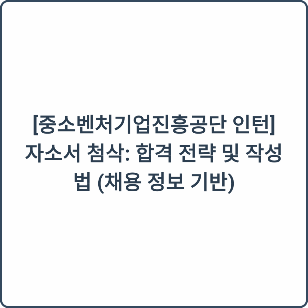 ![[중소벤처기업진흥공단 인턴] 자소서 첨삭: 합격 전략 및 작성법 (채용 정보 기반) 1 중소벤처기업진흥공단 로고](https://www.kosmes.or.kr/images/nsh/content/ci_img01.jpg)