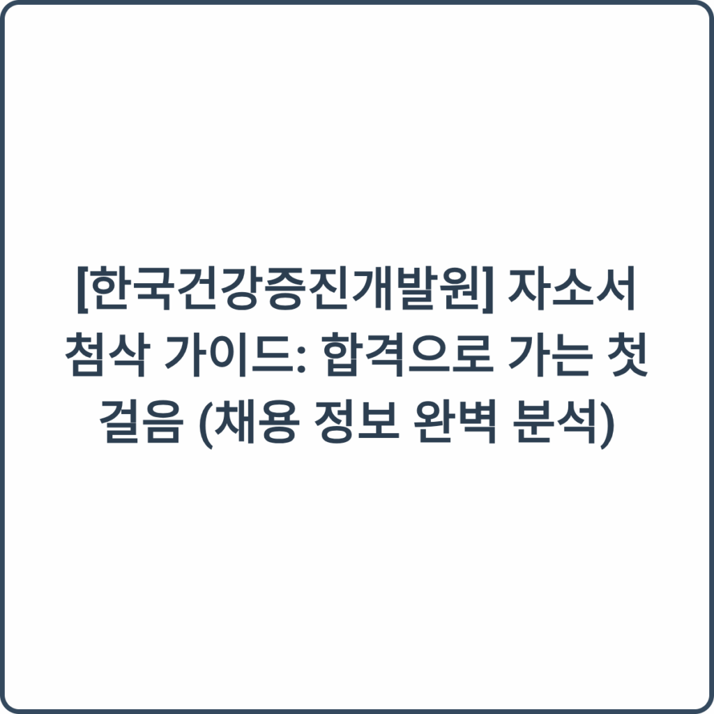 오늘은 국민 건강 증진을 선도하는 한국건강증진개발원의 채용 정보를 소개하고, 합격을 위한 자기소개서 첨삭 가이드를 함께 나누겠습니다.