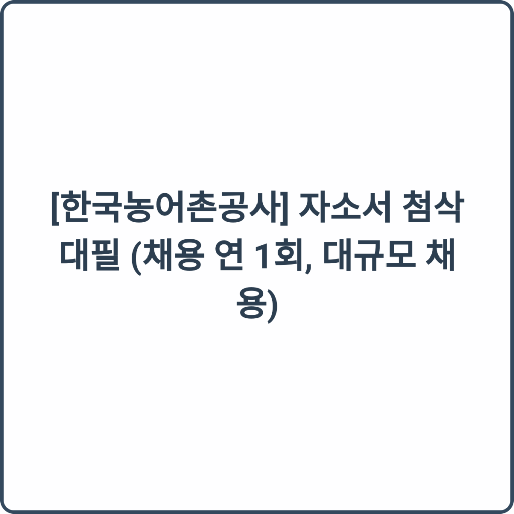 오늘은 한국농어촌공사의 연 1회 대규모 채용 소식을 전해드리며, 자기소개서 첨삭과 대필의 중요성에 대해 이야기해보겠습니다.