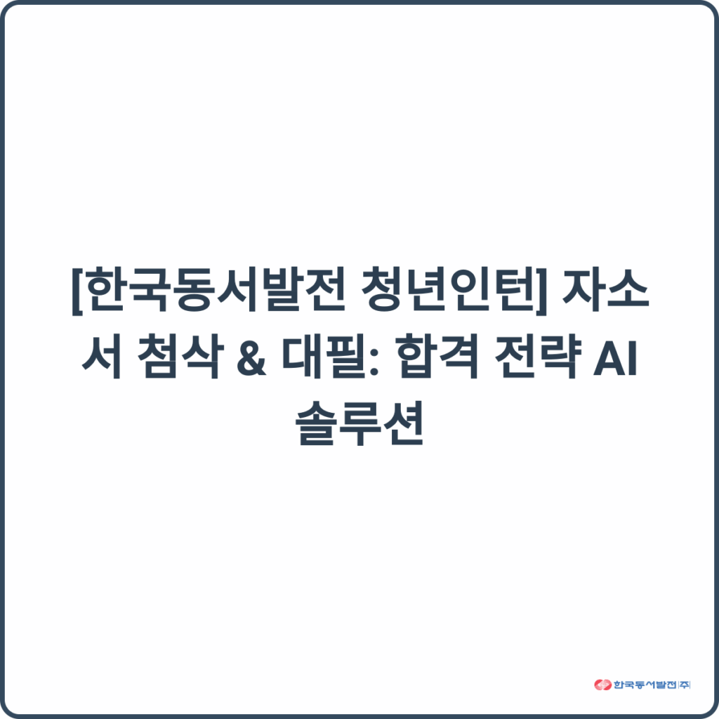 📌 한국동서발전 청년인턴 합격 전략: AI 자소서 첨삭 & 대필 솔루션 🚀