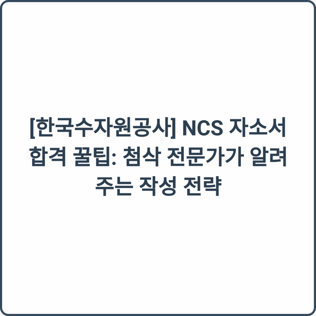 한국수자원공사 NCS 자소서 작성은 단순한 글쓰기 그 이상입니다.