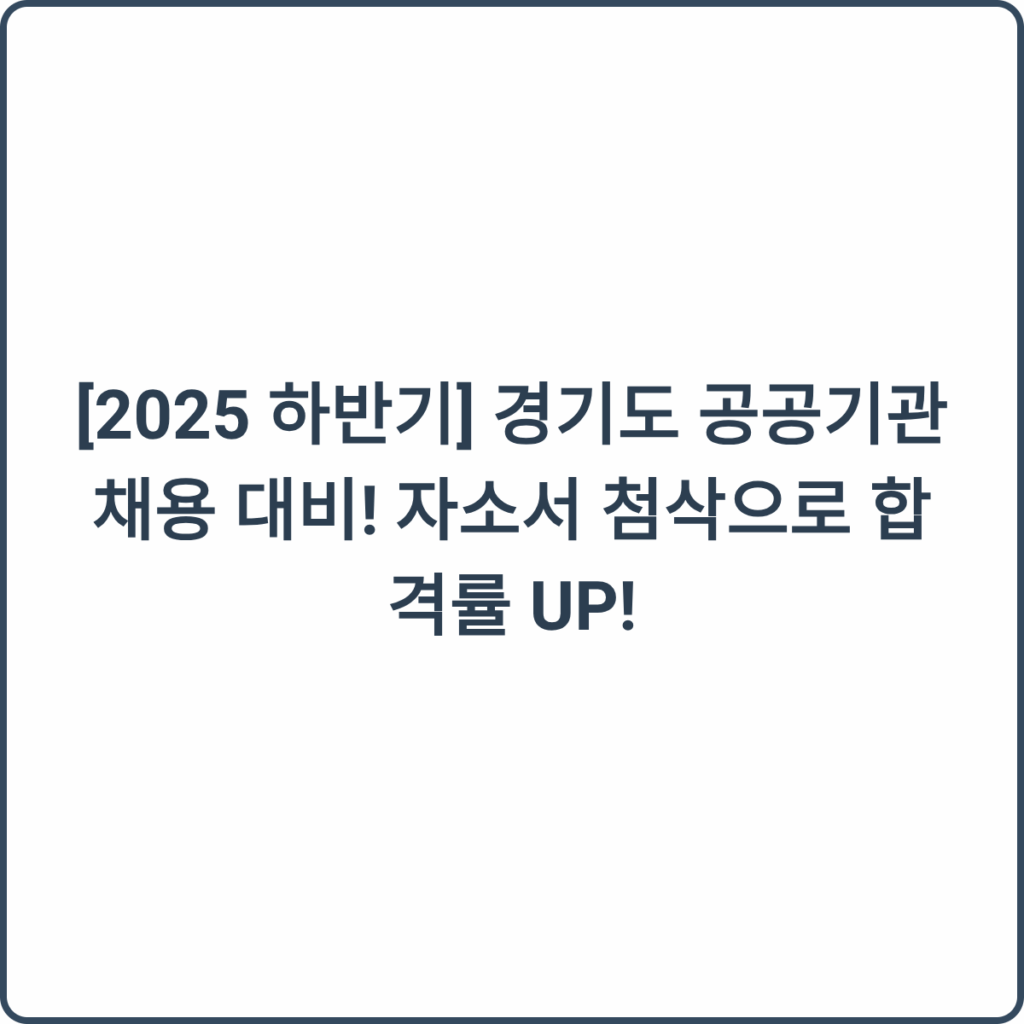 안녕하세요! 😊 오늘은 2025년 하반기 경기도 공공기관 통합채용 소식을 전해드리며, 성공적인 합격을 위한 자기소개서 첨삭의 중요성에 대해 이야기해보겠습니다.
