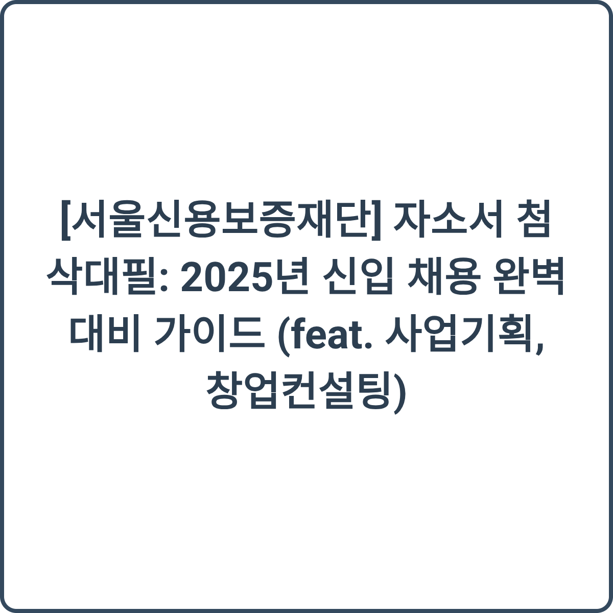 [서울신용보증재단] 자소서 첨삭대필: 2025년 신입 채용 완벽 대비 가이드 (feat. 사업기획, 창업컨설팅)