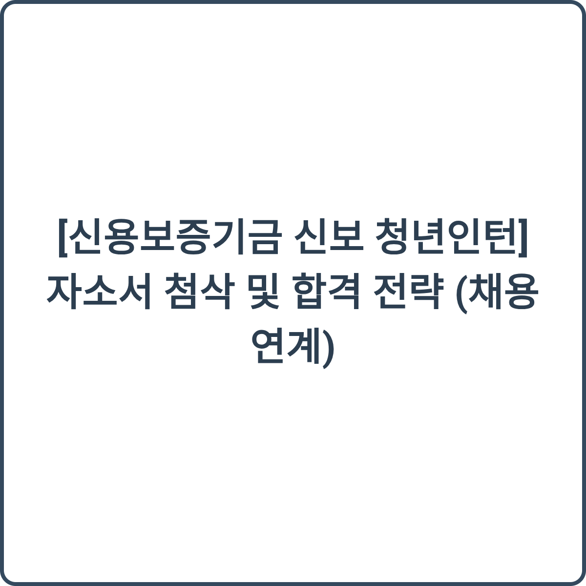 [신용보증기금 신보 청년인턴] 자소서 첨삭 및 합격 전략 (채용 연계)