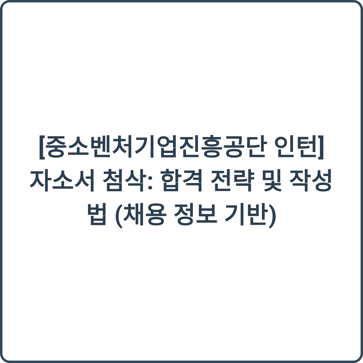 [중소벤처기업진흥공단 인턴] 자소서 첨삭: 합격 전략 및 작성법 (채용 정보 기반)