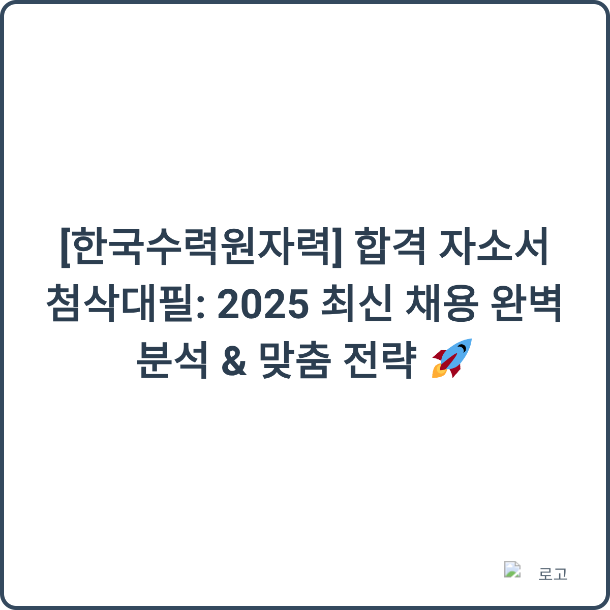 [한국수력원자력] 합격 자소서 첨삭대필: 2025 최신 채용 완벽 분석 & 맞춤 전략 🚀