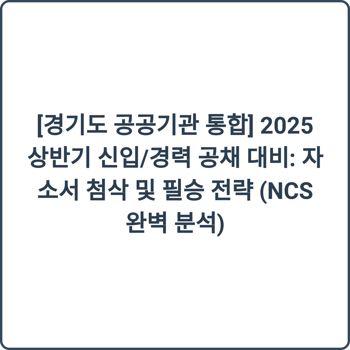 [경기도 공공기관 통합] 2025 상반기 신입/경력 공채 대비: 자소서 첨삭 및 필승 전략 (NCS 완벽 분석)