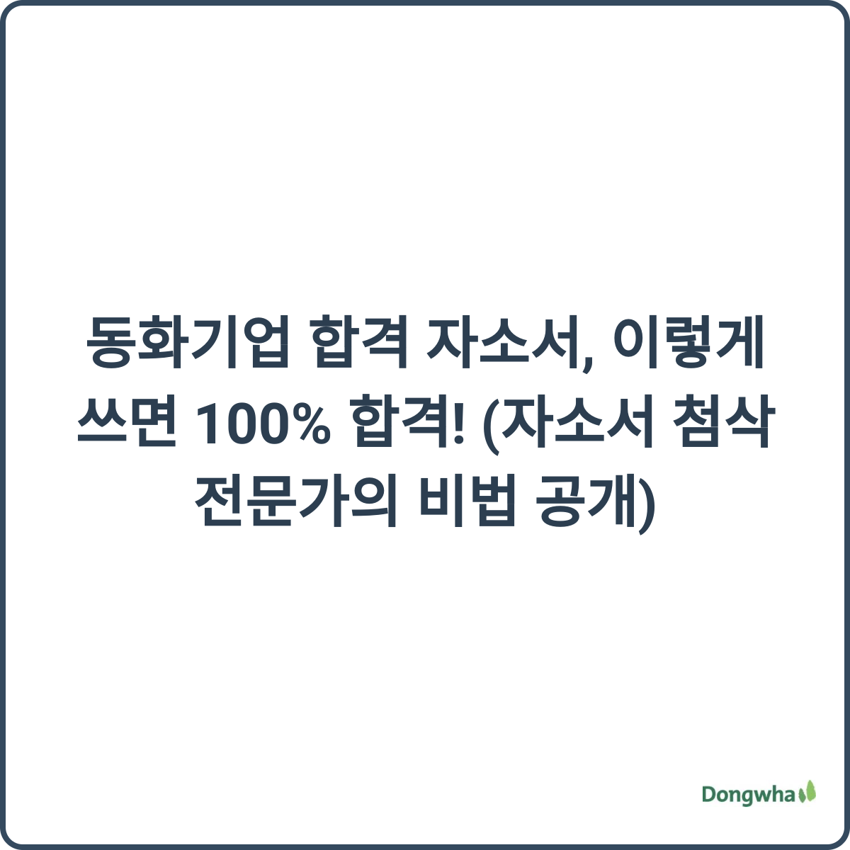 동화기업 합격 자소서, 이렇게 쓰면 100% 합격! (자소서 첨삭 전문가의 비법 공개)
