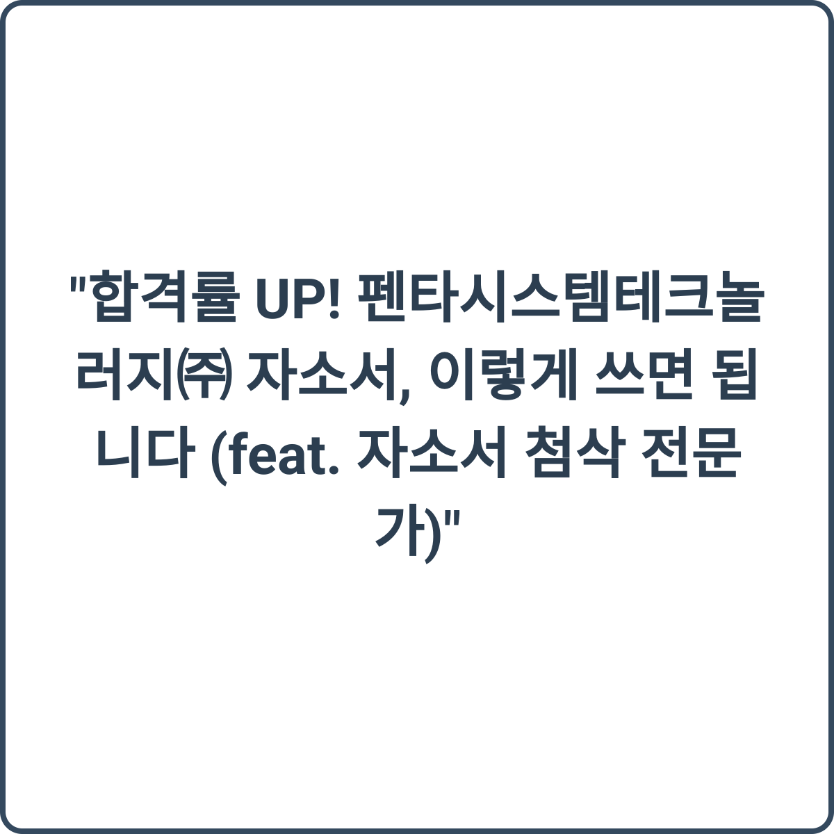 “합격률 UP! 펜타시스템테크놀러지㈜ 자소서, 이렇게 쓰면 됩니다 (feat. 자소서 첨삭 전문가)”