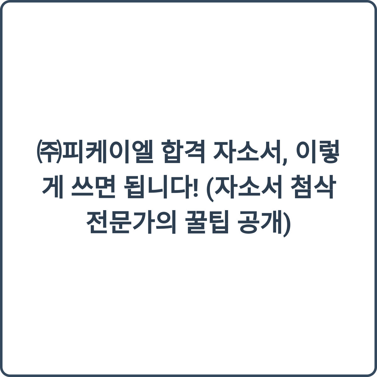 ㈜피케이엘 합격 자소서, 이렇게 쓰면 됩니다! (자소서 첨삭 전문가의 꿀팁 공개)