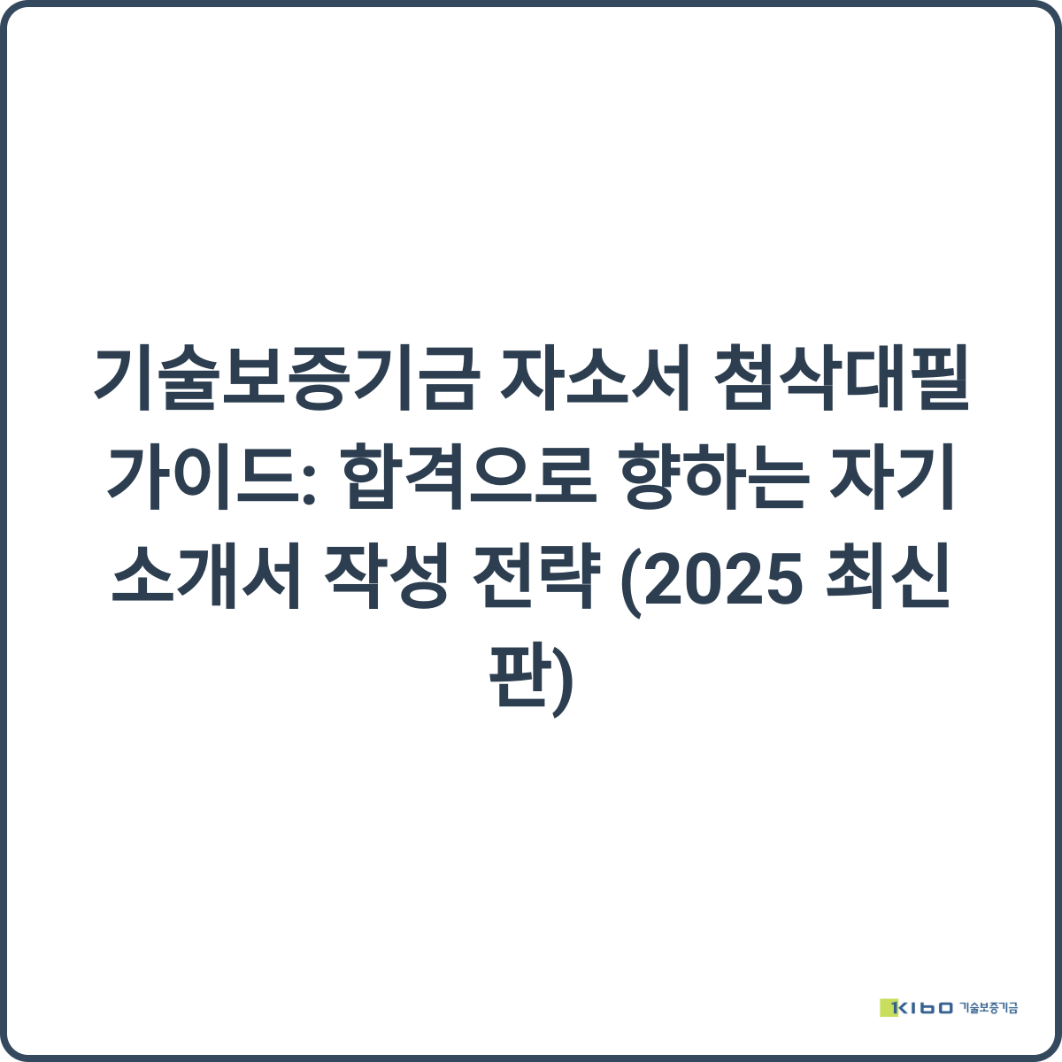 기술보증기금 자소서 첨삭대필 가이드: 합격으로 향하는 자기소개서 작성 전략 (2025 최신판)