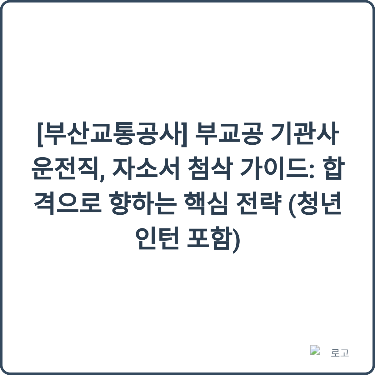 [부산교통공사] 부교공 기관사 운전직, 자소서 첨삭 가이드: 합격으로 향하는 핵심 전략 (청년인턴 포함)