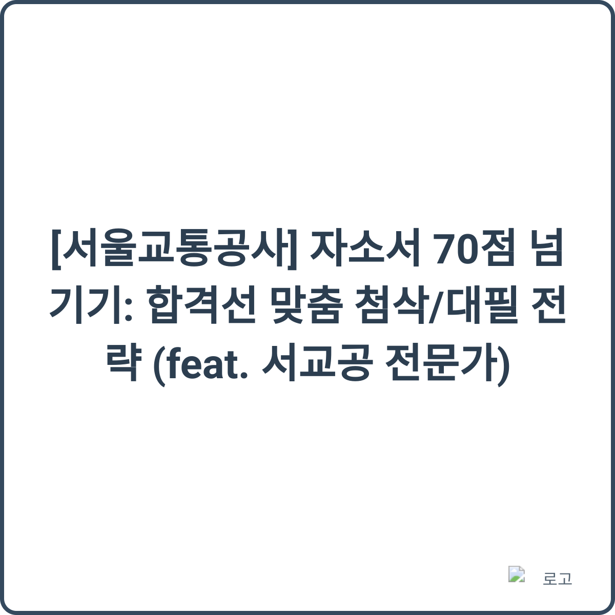[서울교통공사] 자소서 70점 넘기기: 합격선 맞춤 첨삭/대필 전략 (feat. 서교공 전문가)