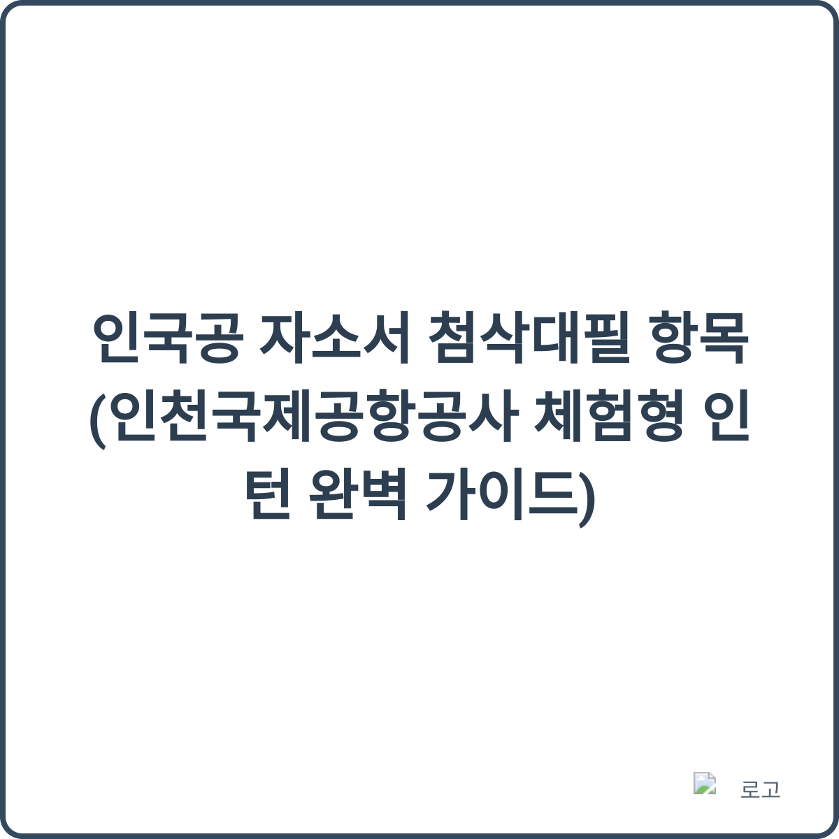 📌 인천국제공항공사 체험형 인턴 합격 가이드: 자소서 첨삭 및 대필 완벽 대비 팁 ✈️ 📑 목차 들어가며: 왜 인천국제공항공사 인턴인가? ...