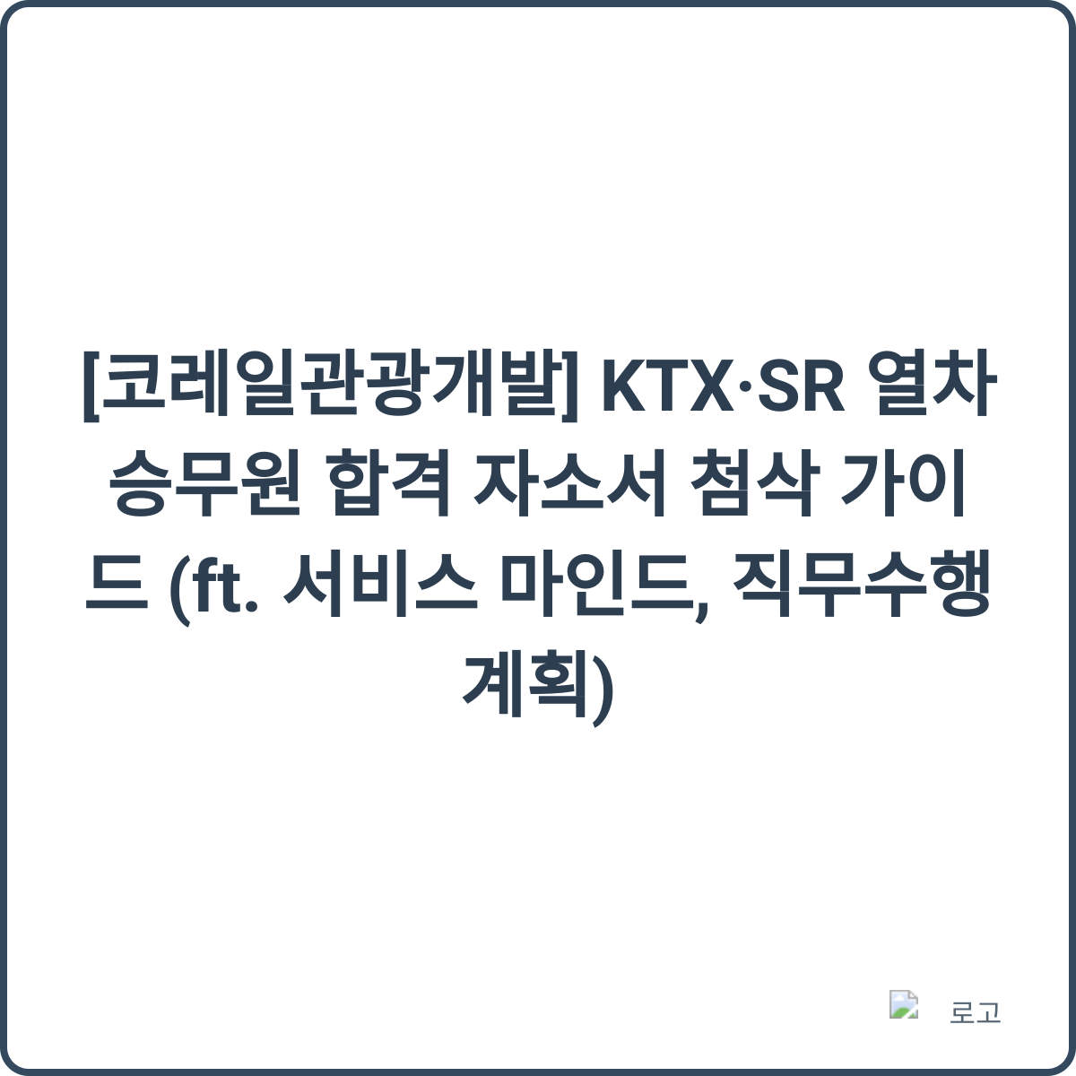 안녕하세요! 👋 오랜 기간 동안 수많은 지원자들의 자소서 첨삭과 컨설팅을 진행해 온 멘토입니다. 오늘은 코레일관광개발의 KTX 및 SR 열차 승무원 ...