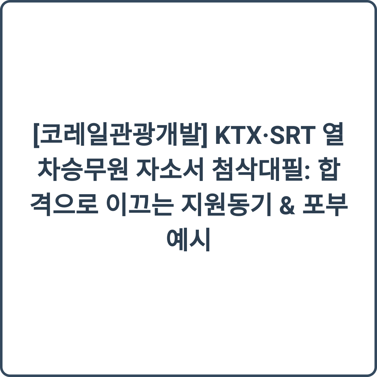 ✨ 코레일관광개발 KTX·SRT 열차승무원 합격 자소서, 이렇게 쓰면 됩니다! (feat. 지원동기 & 포부 예시) 🚄 안녕하세요! 오랜 기간 수많은 지원자들의 ...