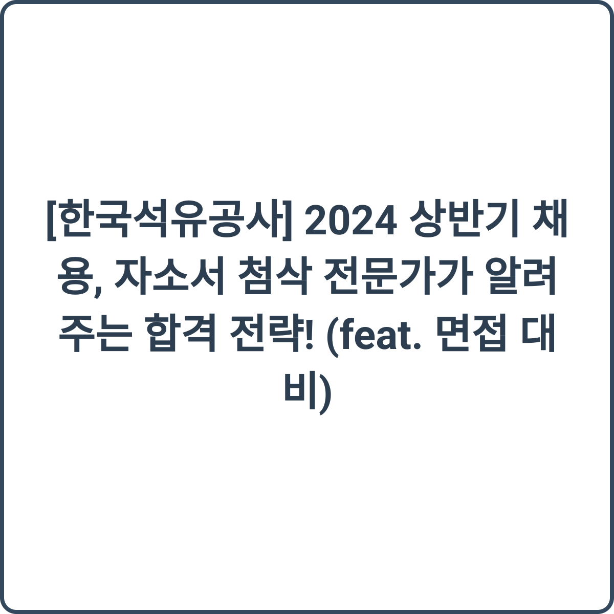 [한국석유공사] 2024 상반기 채용, 자소서 첨삭 전문가가 알려주는 합격 전략! (feat. 면접 대비)