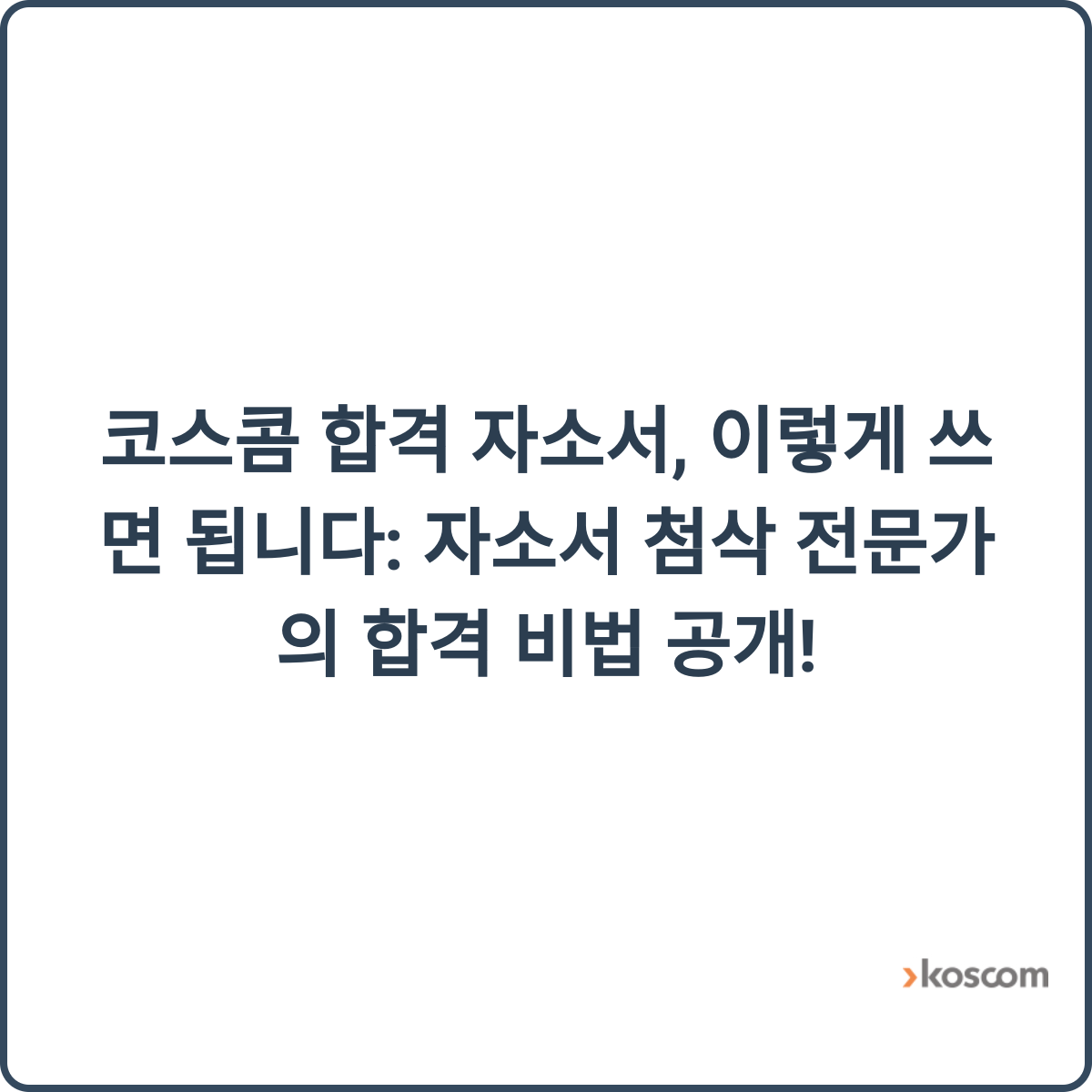 코스콤 합격 자소서, 이렇게 쓰면 됩니다: 자소서 첨삭 전문가의 합격 비법 공개!