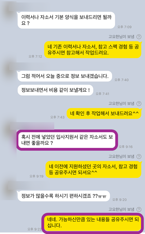 자기소개서, 직무수행계획서 대필 첨삭, EWP서비스를 지원하시는 분 작업 진행했습니다. 안녕하세요! 대기업 생산기술 직무 출신으로, 현재 자기소개서 컨설팅 전문가로 활동하고 있는 ...