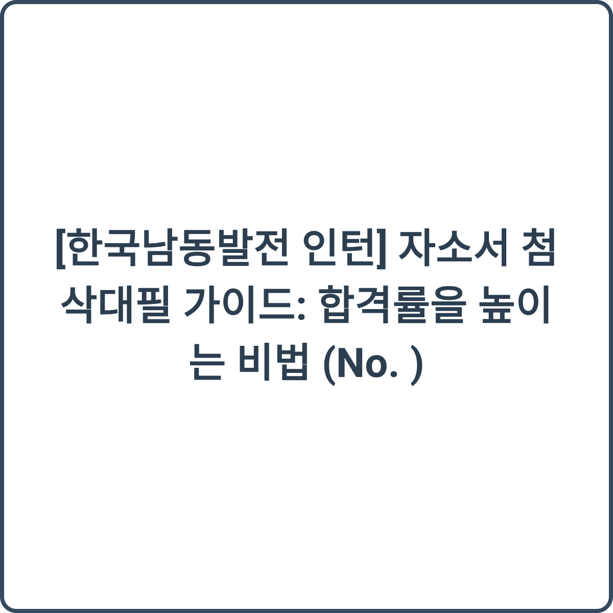 [한국남동발전 인턴] 자소서 첨삭대필 가이드: 합격률을 높이는 비법 (No. )